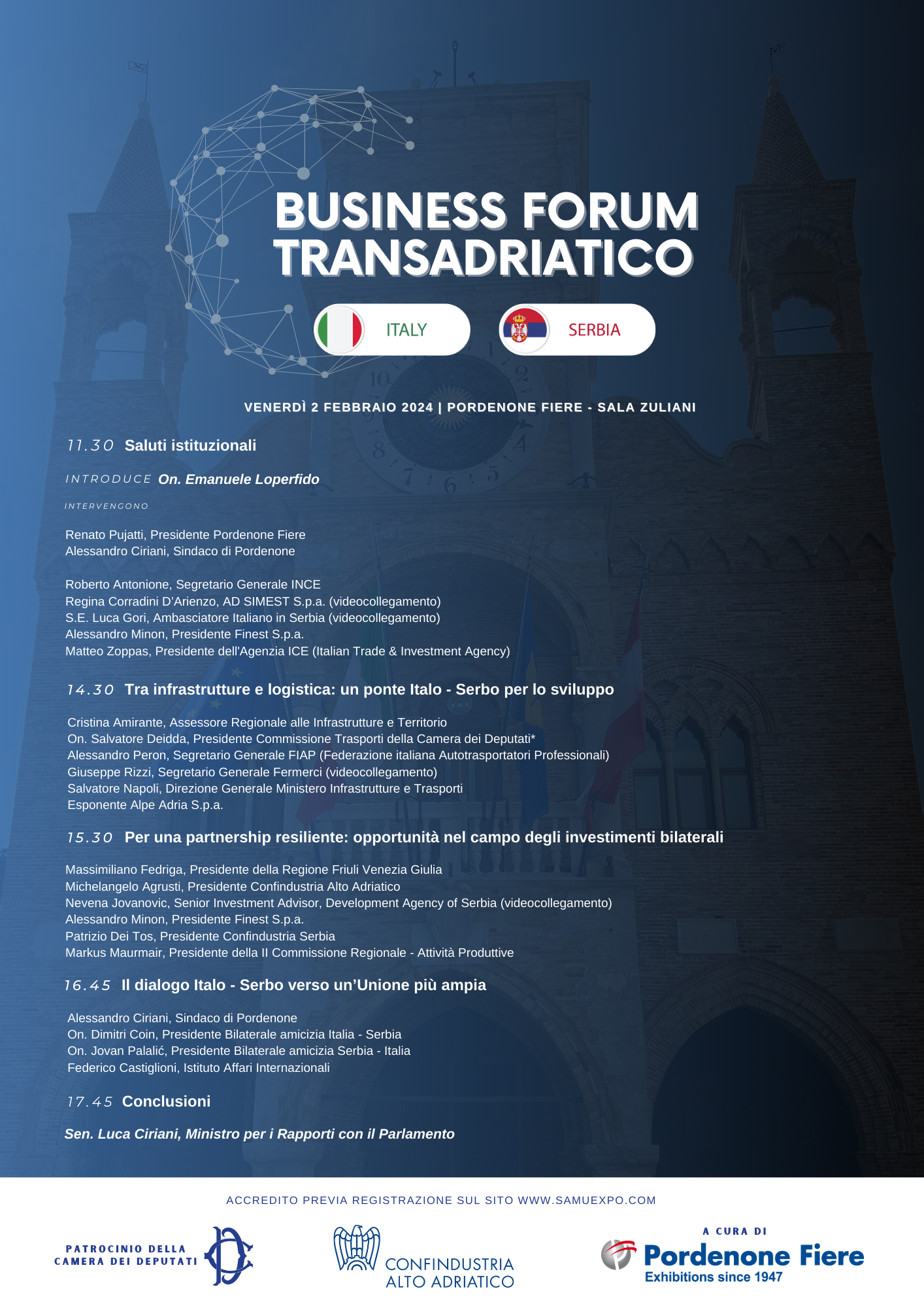 Convegno “BUSINESS FORUM TRANSADRIATICO” - focus sulle relazioni fra Italia e Serbia - negli spazi di Pordenone Fiere in occasione di Samuexpo 2024, patrocinato dalla Camera dei Deputati