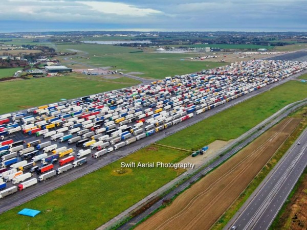 Di seguito le immagini (autore e archivio Swift Aerial Photography) dell’aeroporto di Manston International, a poco più di 30 km a nord dal porto di imbarco britannico di Dover, direzione Francia, utilizzato come area di sosta temporanea per i truck in attesa dello sblocco del divieto imposto dalle Autorità Francesi, tra i quali sono presenti anche autisti di imprese italiane. Immagini alle quali aggiungiamo quella ripresa da un autista di una importante Impresa di Autotrasporto Italiana del Centro Italia (dei quali conosciamo i dati ma non pubblichiamo per Privacy), e pubblicate su una pagina Facebook, delle lunghe file di veicoli parcheggiati in prossimità di Folkestone in attesa del passaggio sui treni Eurotunnel – circa 60 km di veicoli parcheggiati in entrambi i lati - , a testimonianza della situazione di estremo e grave disagio che stanno vivendo non solo le persone ferme negli aeroporti o negli altri siti in attesa di un “passaggio” per l’Italia, bensì gli Autisti delle imprese di Autotrasporto Professionale che hanno svolto il loro lavoro con grande responsabilità e professionalità. Così come tutti gli altri lavoratori di qualsiasi settore che si sono recati nel Unito per le loro pratiche professionali.